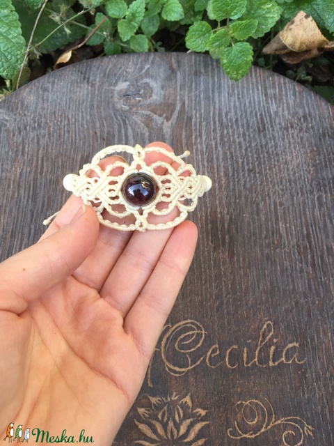- Anyaga: makrame fonal, gránát, féldrágakő, csont