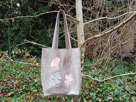Bőr táska drapp ezüstös levelekkel /válltáska