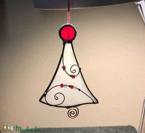 színes üveg, rézdrót, gyöngy, rézfólia, ón