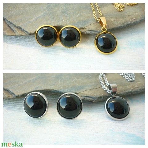 Ónix ásvány fülbevaló/medál szett nemesacél alapban