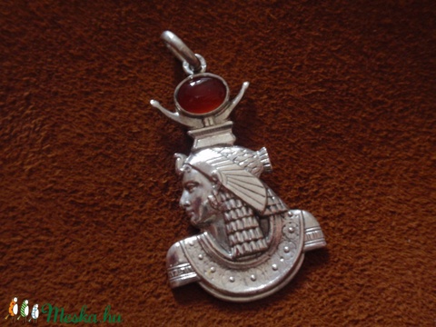 Az istennő feje főlé egy narancsárgás-bordós áttetsző karneol foglaltam be.