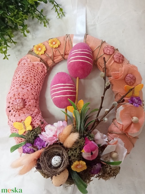 - Anyaga: alap, tojások, virágok, csipke, madárka fészekben