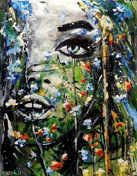Nagyon szeretem alkotásom Ő, egyedi darab és festés, sok médium használatával és az ujjaim - eszközzel is készült.