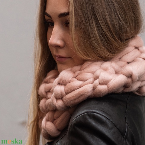 Női púder rózsaszín körsál: extra vastag, kötött női gyapjú bebújós sál