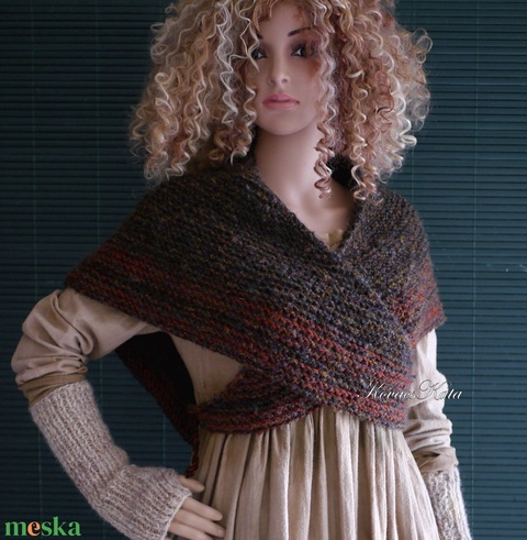 ANGYAL-SZÁRNY - chunky romantikus kézzel kötött vállkendő / barna