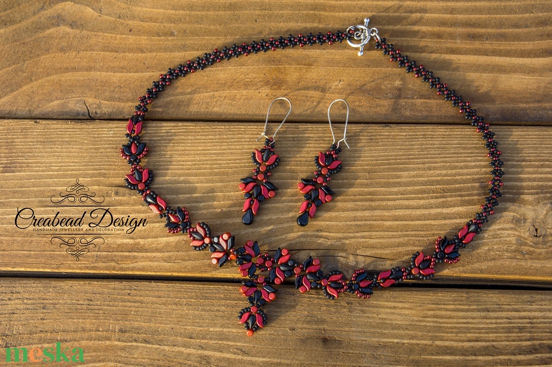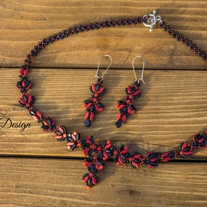 Creabead Design matyó stílusú fekete-piros elegáns fülbevaló