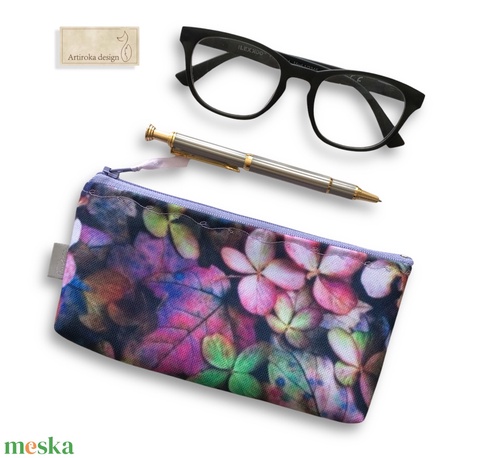 Őszi hortenzia virágos VÍZÁLLÓ irattartó vagy tolltartó neszesszer, szemüvegtok - Artiroka design