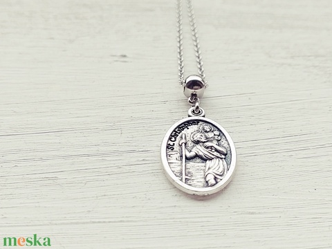 Szent Kristóf amulett, nemesacél láncon