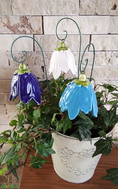 Szedj egy csokrot a virágos kertemből ! Fehér agyagból aprólékos kézi munkával és 2 szeri égetéssel készített mázas kerámia virágok melyekhez festett hajlított drótszár tartozik.Díszítheted vele lakásod,kerted ,balkonod.Átmérőjük: 6x6cm .A kaspó és az élő zöld növény nem a termék része.Boltunkban minden alkotás kész termék ezért akár azonnal megvásárolható .