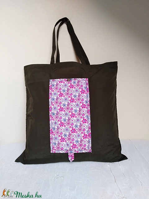 Szatyor, összecsukható, pink virágos, olajzöld