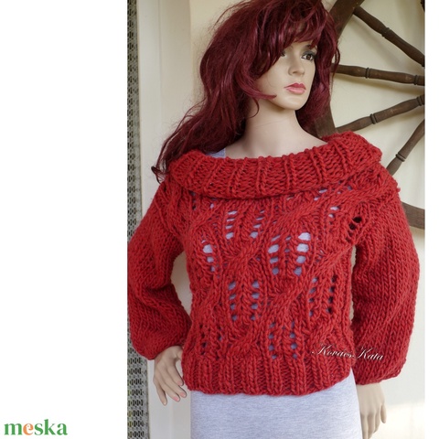 LOTTE - exkluzív kézzel kötött gyapjú pulóver / borvörös KÉSZLETEN
