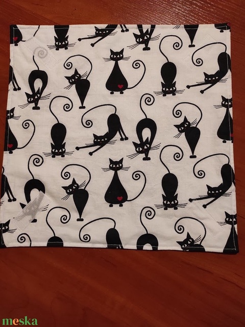 fekete macska mintás újraszalvéta,textilszalvéta tízórai,uzsonna csomagolására,