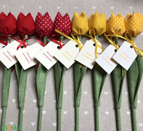 Nőnapi textil tulipánok / szett: 8 db/ ingyen ajándékkísérővel