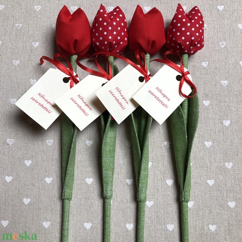 Nőnapi textil tulipánok / szett: 4 db/ ingyen ajándékkísérővel