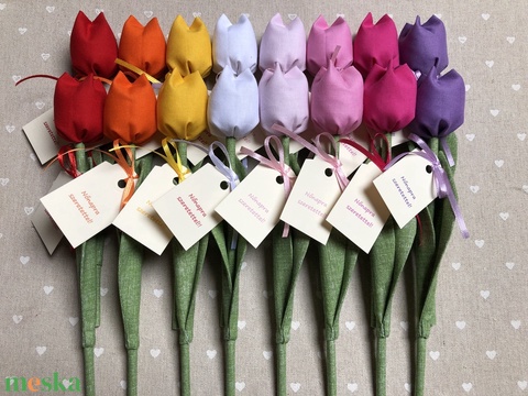 Nőnapi textil tulipánok / szett: 16 db/ ingyen ajándékkísérővel