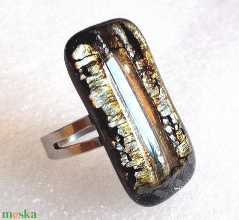 Nemesacél! Bronz fény üveg gyűrű, ajándék névnapra, születésnapra.