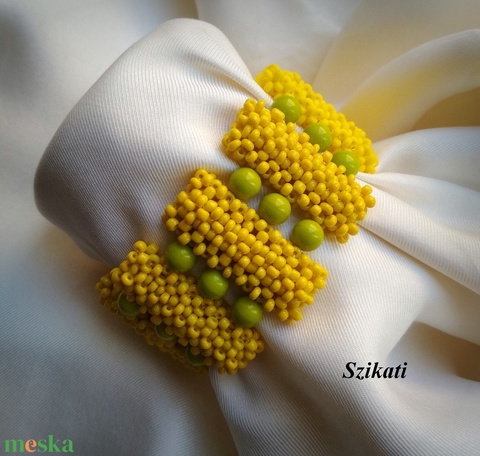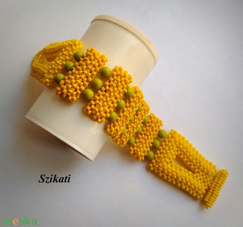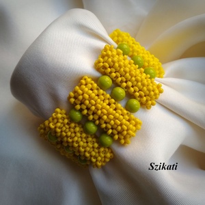 Sárga - zöld fémmentes gyöngyfűzött karkötő