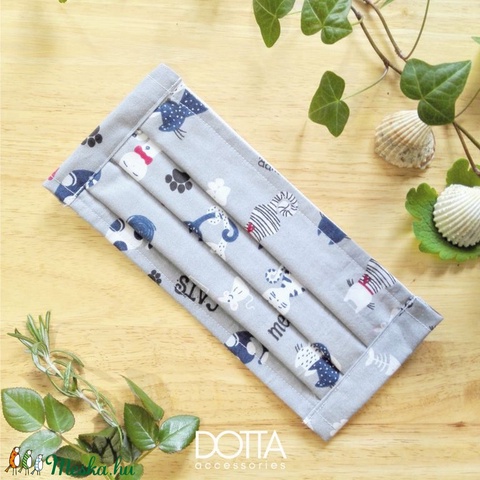Cicás maszk - 2 rétegű - szürke női gyerek cica arcmaszk - 100% pamut