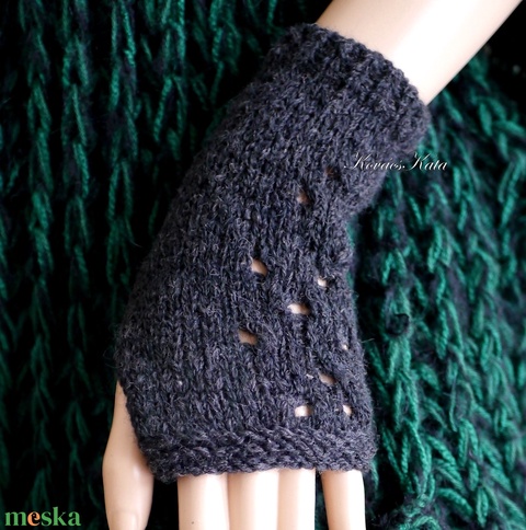 BOSZI-KESZTYŰ / sky - kézzel kötött bohém alpaka kézmelegítő / fekete
