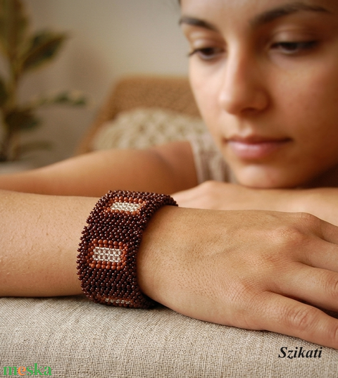 Barna széles gyöngyfűzött karkötő