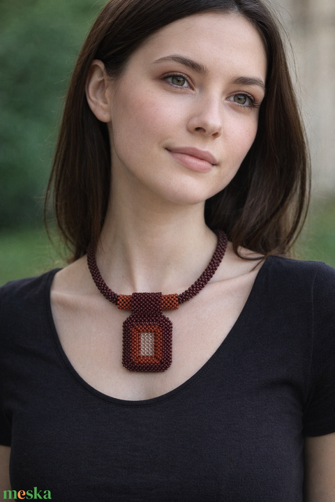 Barna gyöngyfűzött nyaklánc levehető medállal