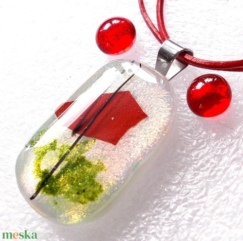 - Anyaga: dichroic ékszerüveg, ékszer szerelék, sodrony, viaszolt szál, üveg, orvosi fém, rozsdamentes