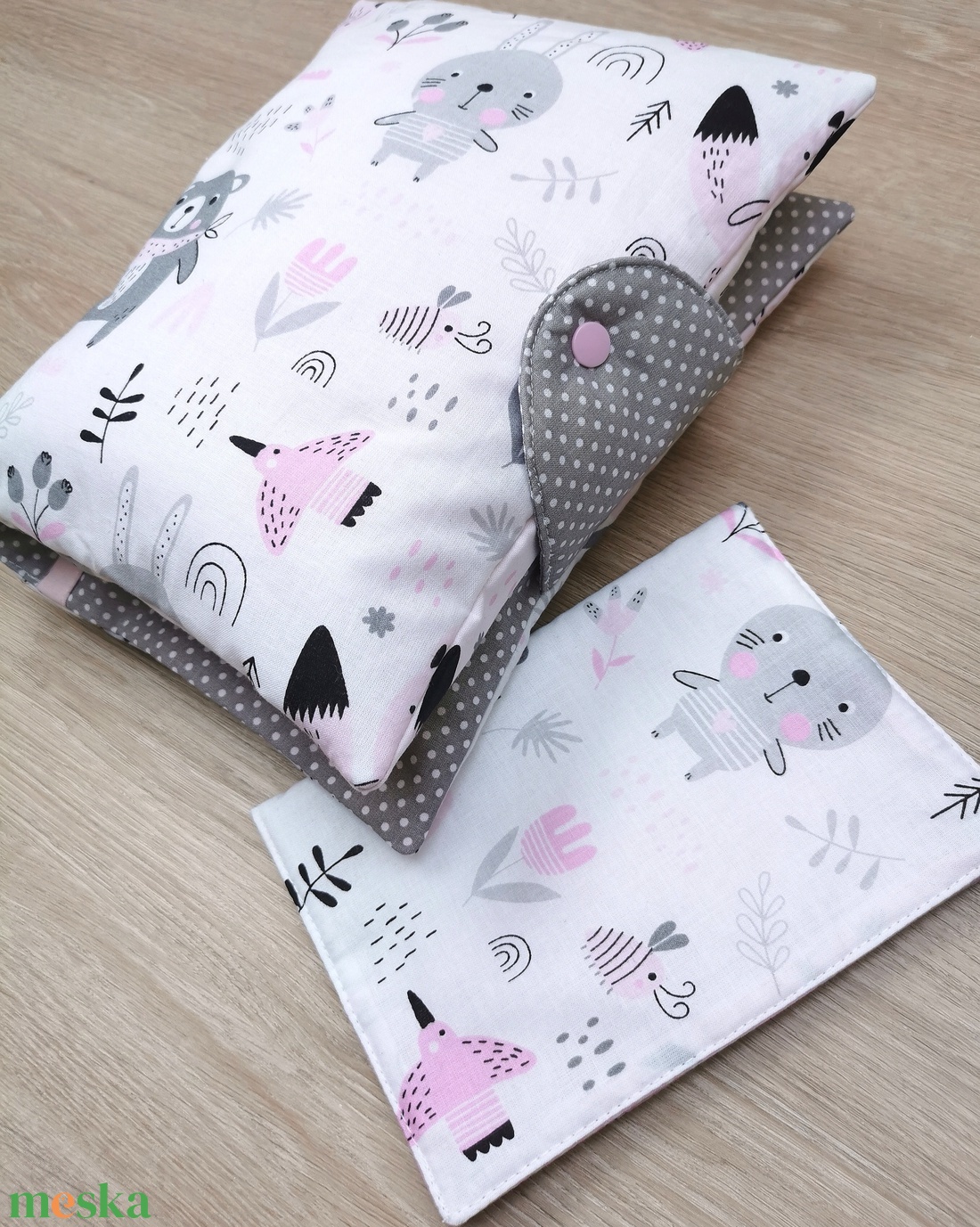 Baba látogató ajándék csomag 2 db-os "rózsaszín-szürke macis nyuszis"
