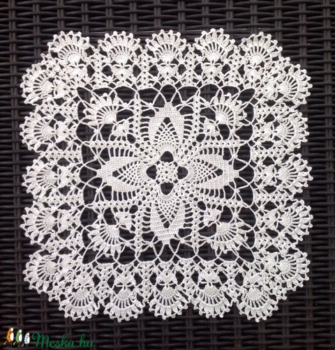 Fehér színű négyszögletes horgolt csipke terítő