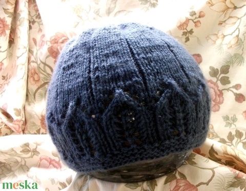 Átmeneti, kék kötött női sapka