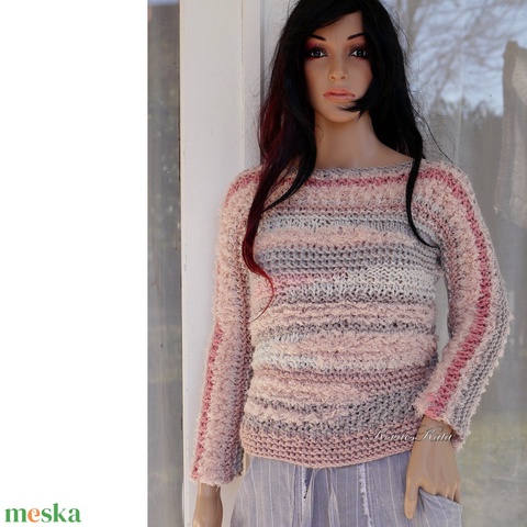 LÉNA / TAVASZVÁRÓ - kézzel kötött artsy design pulóver