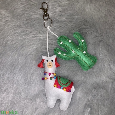 Láma,kaktusz filc kulcstartó,táskadísz, fityegő
