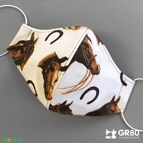 Ló mintás maszk, állítható fülpánttal, orrklipsszel, szűrőbetéttel.