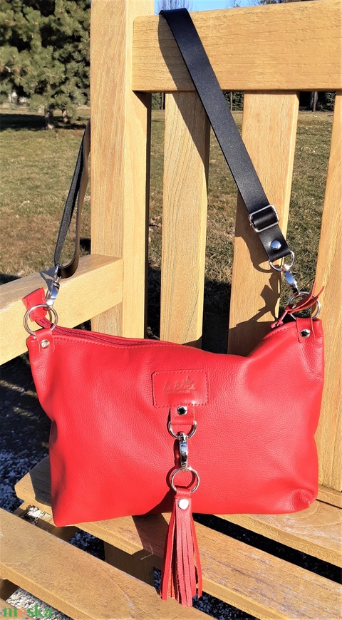 Piros bőr kistáska levehető díszbojttal City XS 003