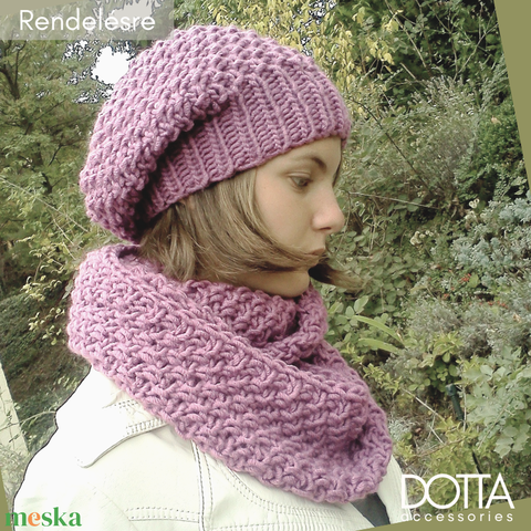 Gyapjús kötött szett női sapka sállal - vastag meleg téli fonalból - Rendelésre