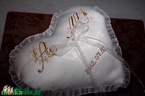 Szív gyűrűpárna monogrammal-dátummal egyedi-fehér