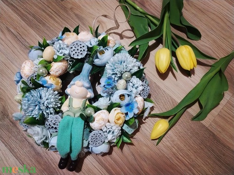 - Anyaga: tűzőhab, koszorú, művirág, selyemvirág, ragasztó, szalag, kerámia