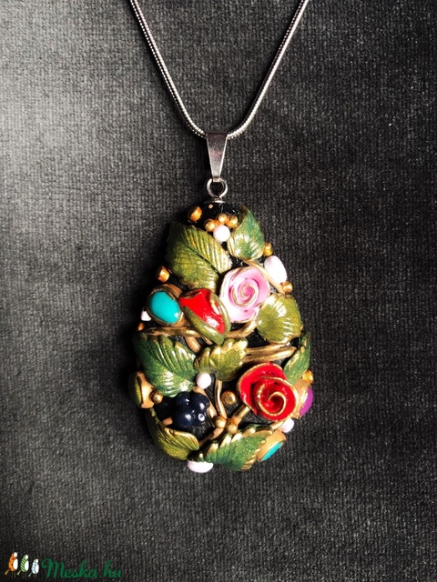 - Anyaga: polymer clay, nemesacél akasztó, lakk