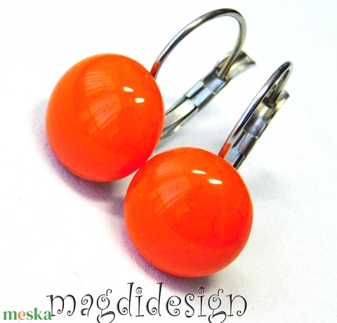 Sötét narancssárga üvegékszer kapcsos fülbevaló