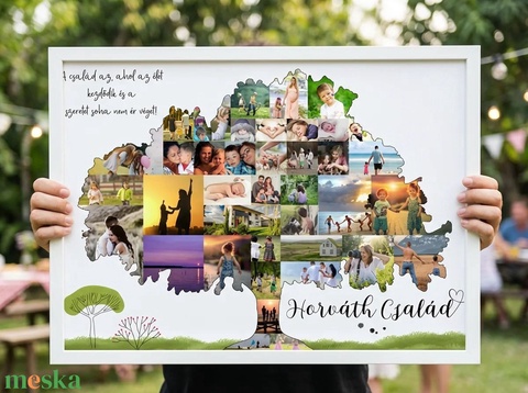 Családi fotóid kiváló alapanyagot szolgálnak ennek a gyönyörű lombos fának Kiváló ajándék lehet születésnapokra, házassági évfordulóra, nagyiknak, nagypapának, mamának, papának. A poszterhez szükséges fotók száma: Minimum 10 db, maximum 40 db. A fotókat a vásárlásod után az email címemre várom.
