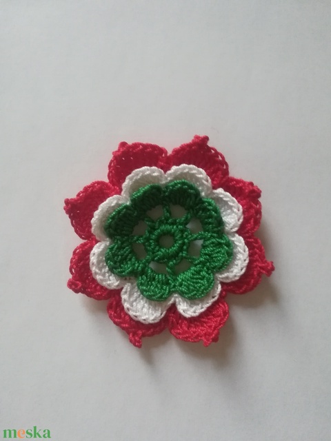 Horgolt, virág alakú kokárda