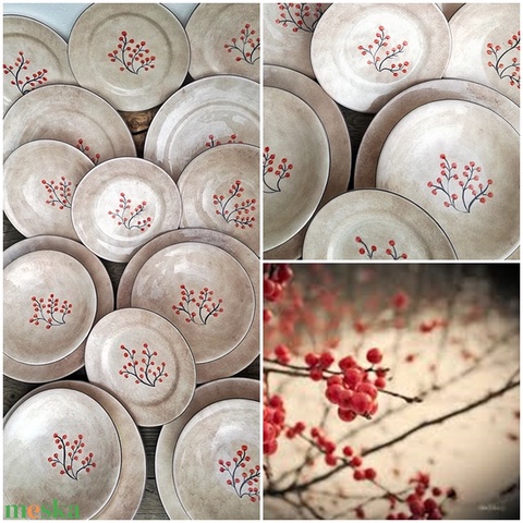 Egyedi festésű piros,bogyós kerámia készlet