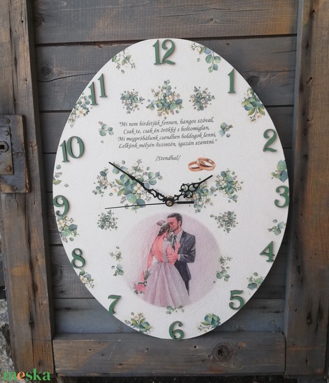 Nagyméretű, ovális, feliratos, egyedi mintás falióra, esküvőre, házassági évfordulóra. :-)
