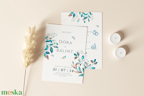 BLUEFLOWER Esküvői meghívó, Leveles Esküvői Meghívó, Kék Esküvői Meghívó, Őszi Esküvői Meghívó