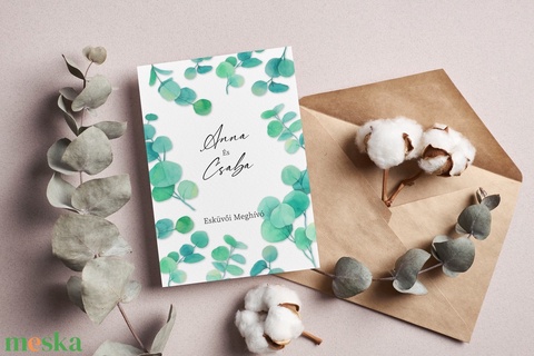 GREENLEAF Esküvői Meghívó, Zöld Esküvői Meghívó, Leveles Esküvői Meghívó, Minimal Esküvői Meghívó