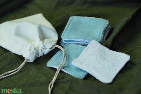 5 db arctisztító párna mosózsákkal, kék színben, hulladékmentes, zero waste
