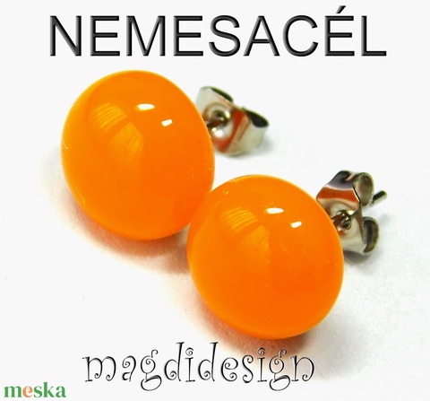 Narancs üvegékszer pötty fülbevaló ORVOSI ACÉL