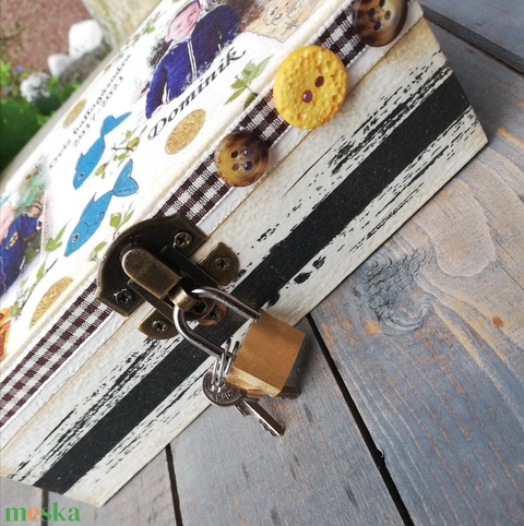 - Anyaga: fa, akrillakk, akrilfesték, transzfer , szalag