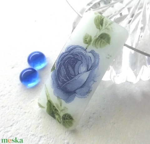 Kék rózsa üvegékszer, ajándék anyák napjára, névnapra, születésnapra.