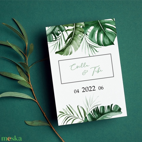 GREENLEAF Esküvői Meghívó, Levelek Esküvői Meghívó, Keretes Esküvői Meghívó, Zöld Esküvői Meghívó