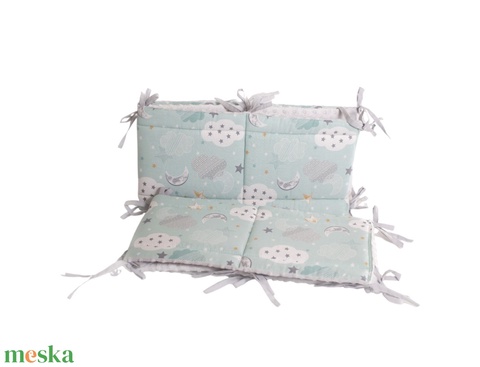 Kb. 30 cm magas, akár a matrac melle is letolható, hogy ne találjanak kiutat a kis apró talpak ☺️ A kötözők hosszúnak mondhatóak és 30-35 cm-es közönként kerülnek elhelyezésre. A mosás során előforduló töltet elmozdulás megelőzésére vízszintes steppelést is kapott a védő.